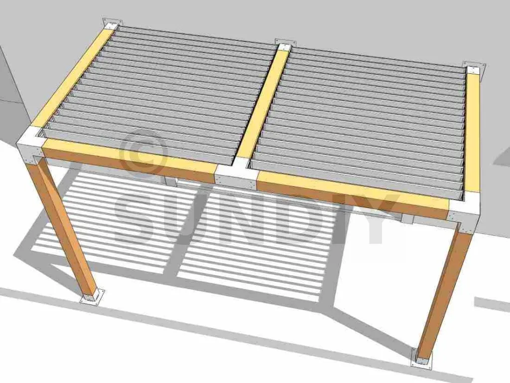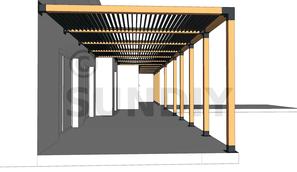 Um Ihr Projekt konkret zu visualisieren, erhalten Sie mehrere 3D-Ansichten aus verschiedenen Blickwinkeln. So bekommen Sie einen realistischen Eindruck vom späteren Endergebnis Ihrer Pergola. Zusätzlich enthält eine der 3D-Ansichten Maßangaben – eine wertvolle Hilfe für die Montage.